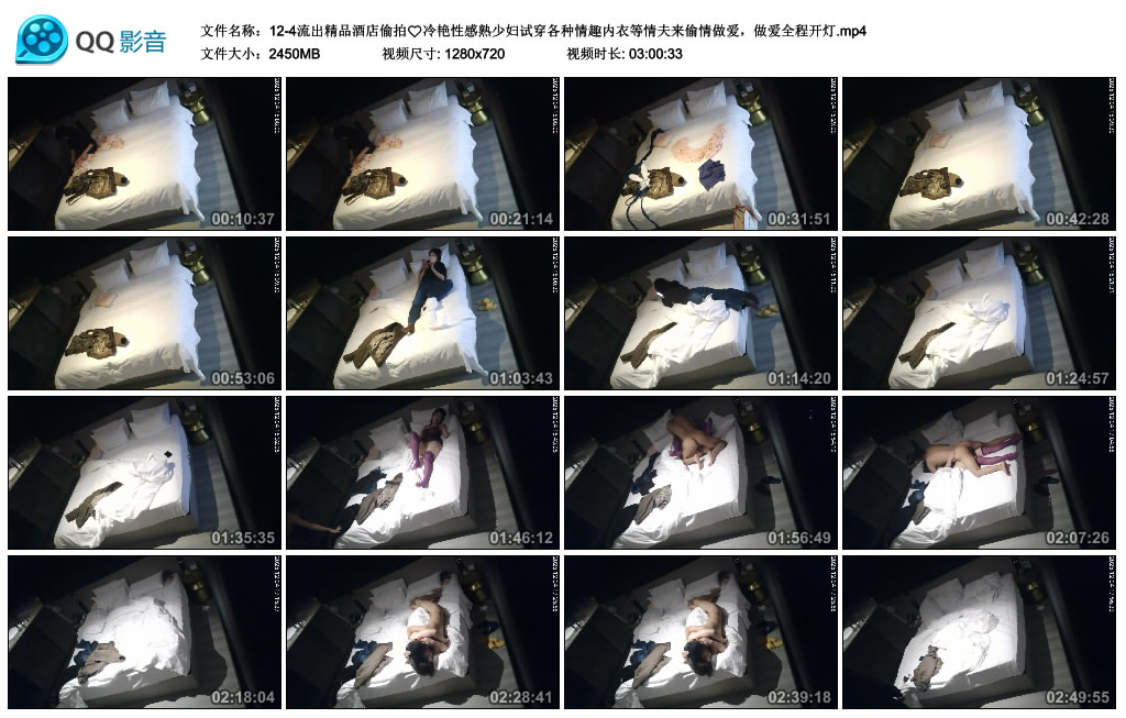 【影片名称】:12-4流出精品酒店偷拍 冷艳性感熟少妇试穿各种情趣内衣等情夫来偷情做爱,做爱全程开灯